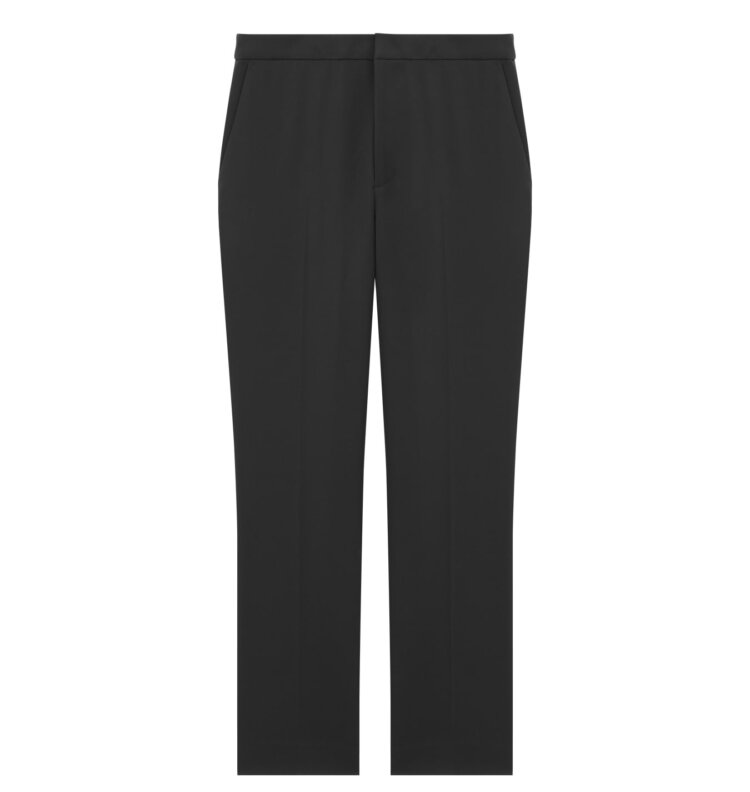 シャープなブラックカラーが全体を引き締め、ブラウスの甘さを程よく抑える役割を担います。ストレッチ性のある素材により、動きやすさと美しいシルエットを両立。無駄のないデザインがトップスの存在感を引き立て、オンシーンにも自信を持って取り入れられる一本です。
