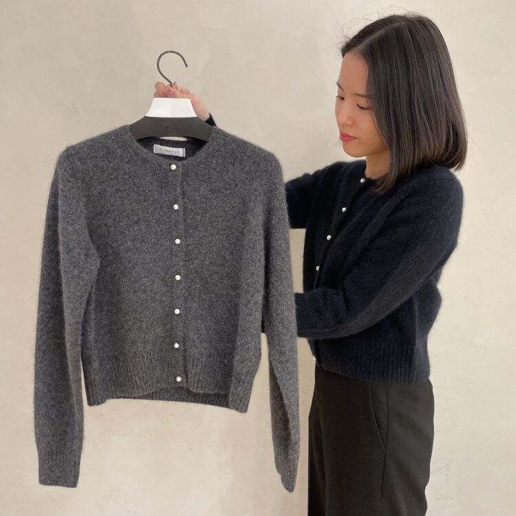 クルーネックシアーニットカーディガン