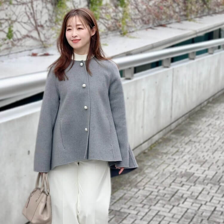 ロマンティックな季節に相応しいホワイトのコートは、グレー合わせで都会的に仕上げて