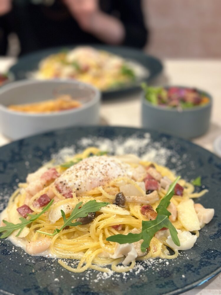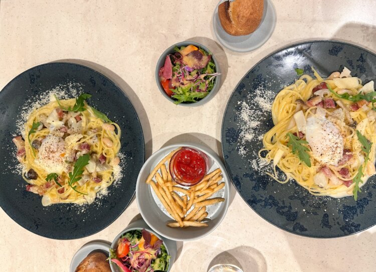 ランチでいただいたのは、濃厚でコクのあるカルボナーラ。クリーミーなのに重すぎず、ベーコンの旨みとチーズのバランスが絶妙で、思わず「美味しい…」と声が出てしまう一皿でした。