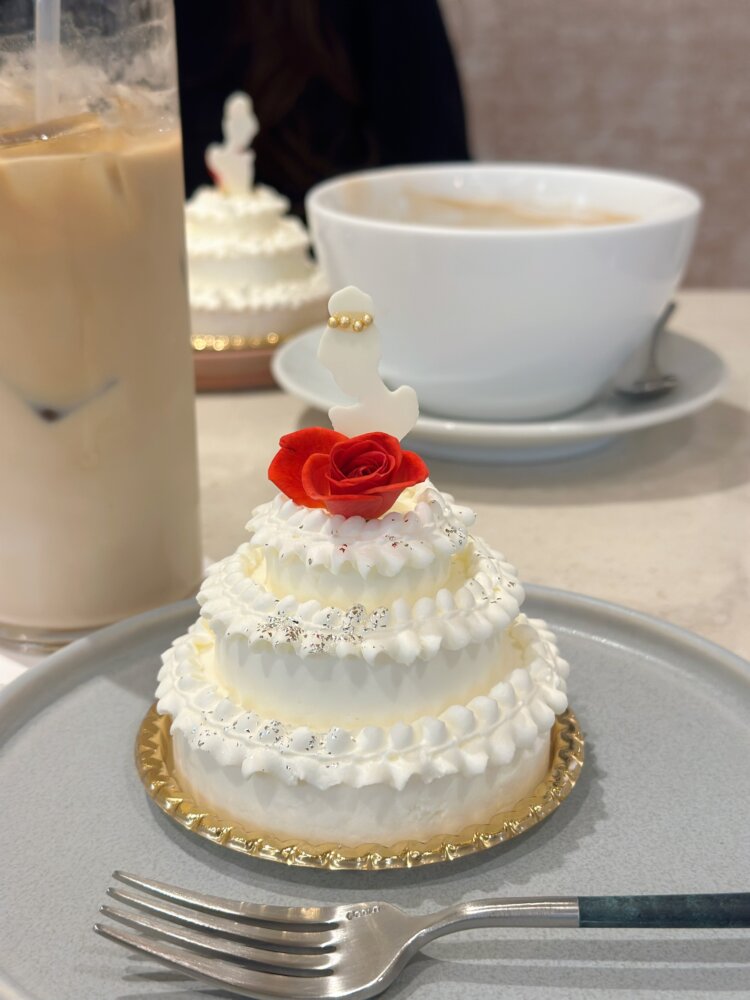 デザートには、ドレスをまとったプリンセスのようなショートケーキが登場。ふんわり軽いクリームと上品な甘さで、見た目も味も特別感たっぷり。バースデーのお祝いにぴったりの締めくくりでした。