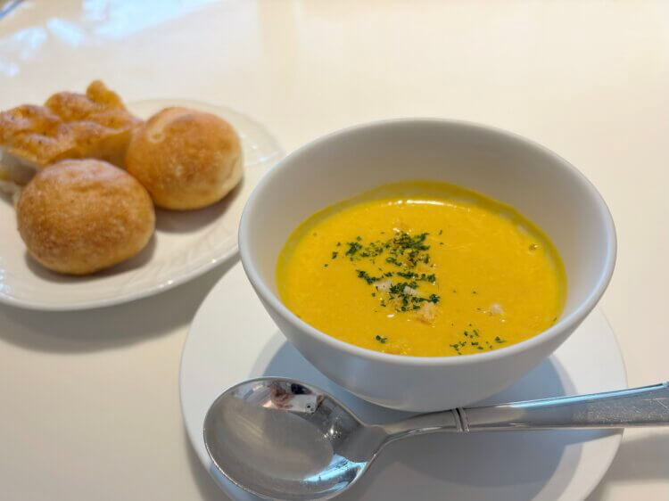 前菜としていただいた 宝塚産かぼちゃのポタージュは、素材本来の甘みが引き立つやさしい味わい。