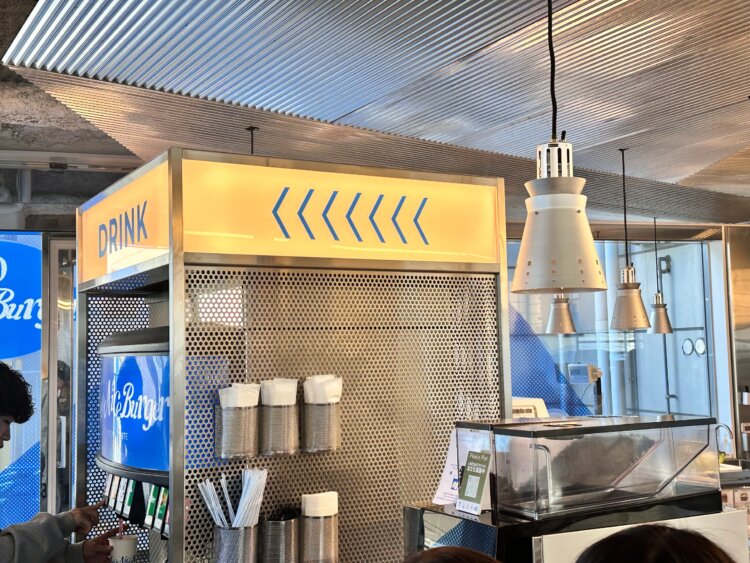 「ネオ・ファストフード」をコンセプトにした店舗。ステンレスを基調とした明るく洗練された店内は、表参道らしい都会的なムードで、テラス席を含めた広々としたイートインスペースも印象的でした。