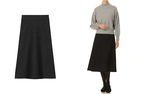 さりげないドット柄がクラシカルな華やぎを添えるジャガード素材のフレアスカート。