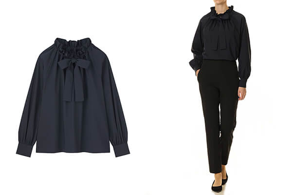 エレガントな佇まいを引き立てる、フリルネック×ボウタイリボンが印象的なブラウスです。
