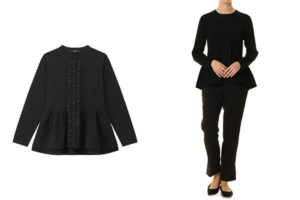 身頃はすっきりとした印象に仕上げ、裾に向かって自然に広がるペプラムシルエットが、