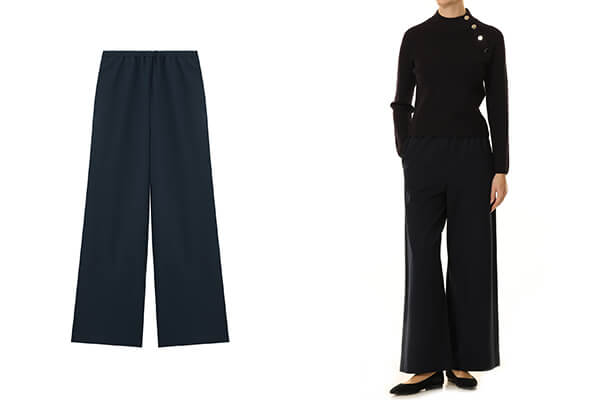 すっきりとした縦ラインを描くシルエットに、ウエストは総ゴム仕様を採用することで、見た目の美しさと快適な穿き心地を両立しました。
