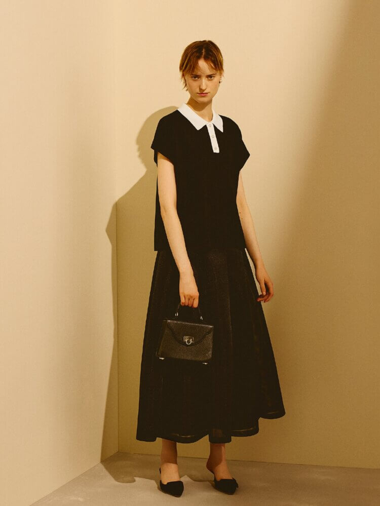 軽やかさと適度なハリ感を兼ね備えた素材が、美しいフォルムをキープしながら、エレガントな佇まいを演出します。