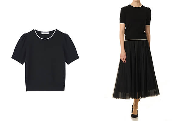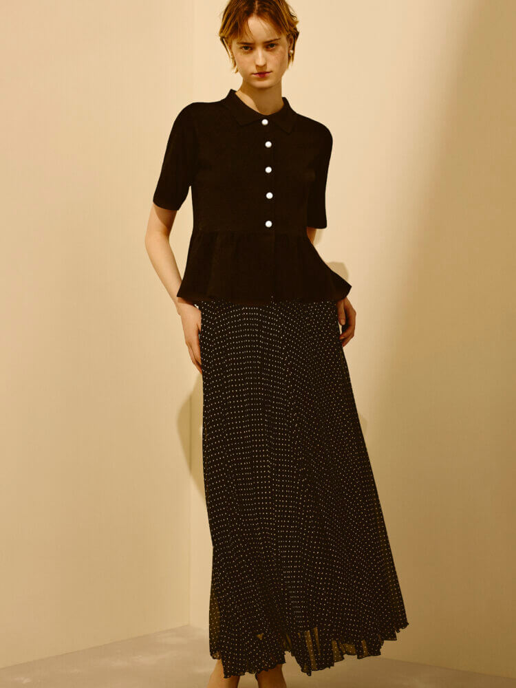 コンパクトな身頃からふんわりと広がるペプラムデザインが、ウエスト位置を自然と高く見せ、女性らしいメリハリのあるラインを演出します。