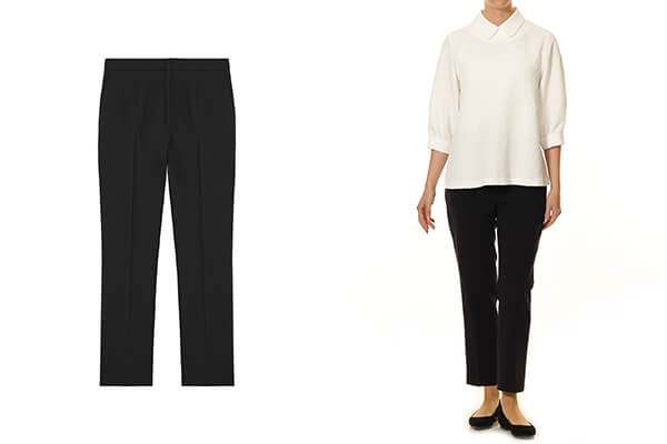 トリアセテートをメインにした生地は、適度なハリと伸縮性を兼ね備えており、動きやすく快適な穿き心地を叶えながら、きちんと感のある美しいシルエットをキープしてくれます。