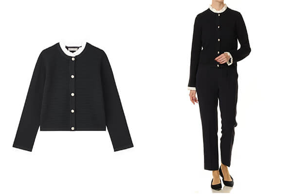 統一感のあるセットアップスタイルが完成し、きちんと感が求められるオフィスシーンや会食、セミフォーマルな場面にも活躍。