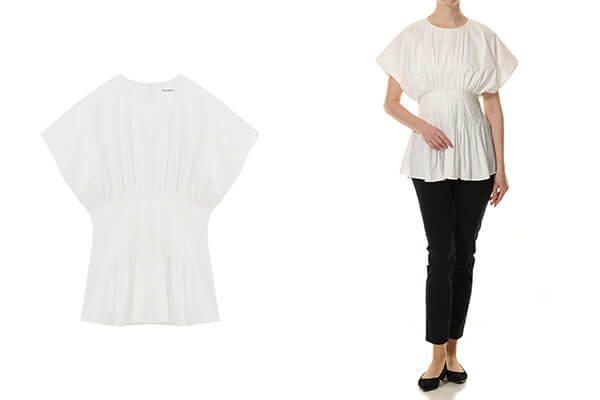 ウエストのタックシェイプのデザインがスタイルアップを叶えるブラウス。