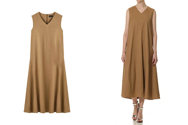 天然素材のようなナチュラルな表情が魅力の、エレガントなノースリーブワンピース。