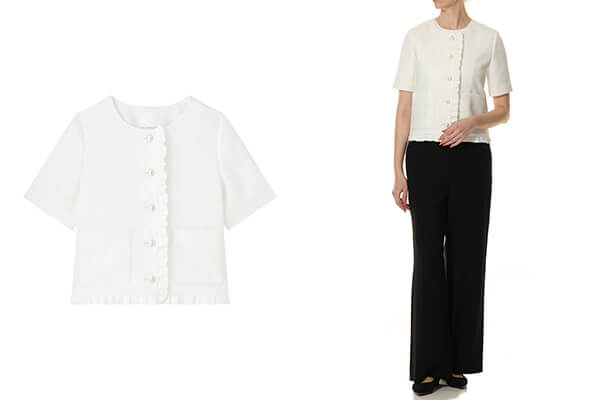 リネンライクフリルデザイン半袖ジャケット ¥39,600