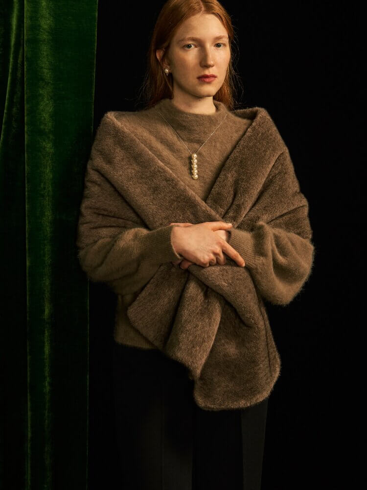 長さを調節していただけるデザインなのでスタイリングによってバランスを変えてお召し頂けるところが魅力のひとつです。