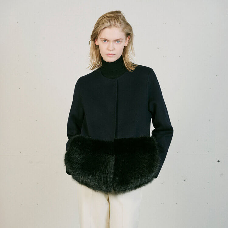 フロント中心に裾まで施された金属ファスナーが縦のラインを強調してくれます。
