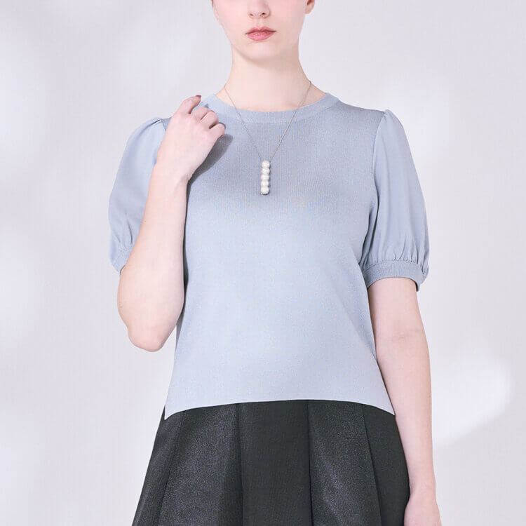 程よくボディに沿うコンパクトなシルエットなのでコートのインナーとしても華やかさを表現してくれます。
