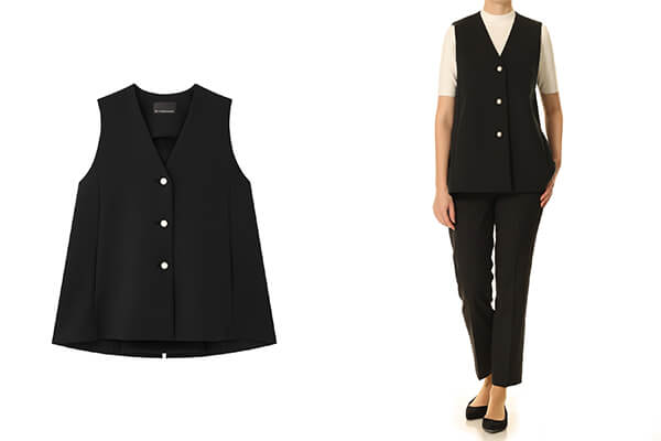 パールボタンVネックフレアジレ