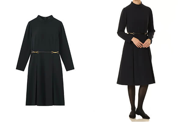 ダブルクロスベルト付ハイネックワンピース