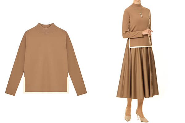 タートルネックリブニットプルオーバー