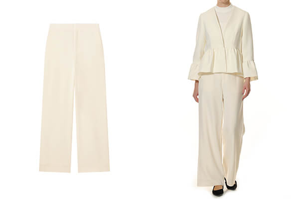 ワイドすぎないすっきりとしたストレートラインの美しいシルエットで、バックウエストにはゴムを施し、快適な着心地を与えてくれ、
