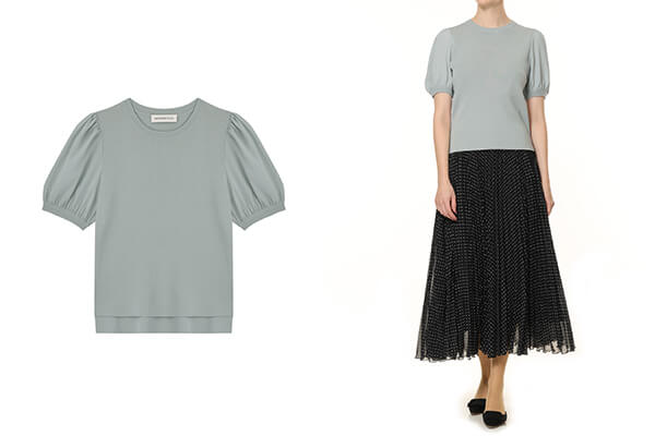 程よくコンパクトなシルエットに、ふんわりとしたパフスリーブが女性らしい立体感を添え、