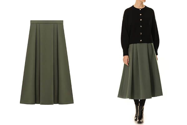 モードな存在感とエレガンスを兼ね備えたフレアスカート。