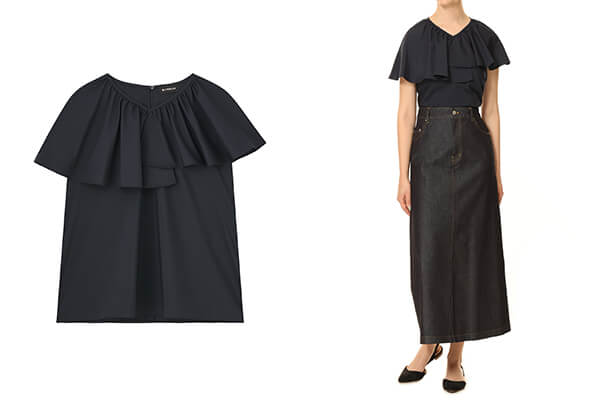 ストレッチビッグカラーノースリーブブラウス